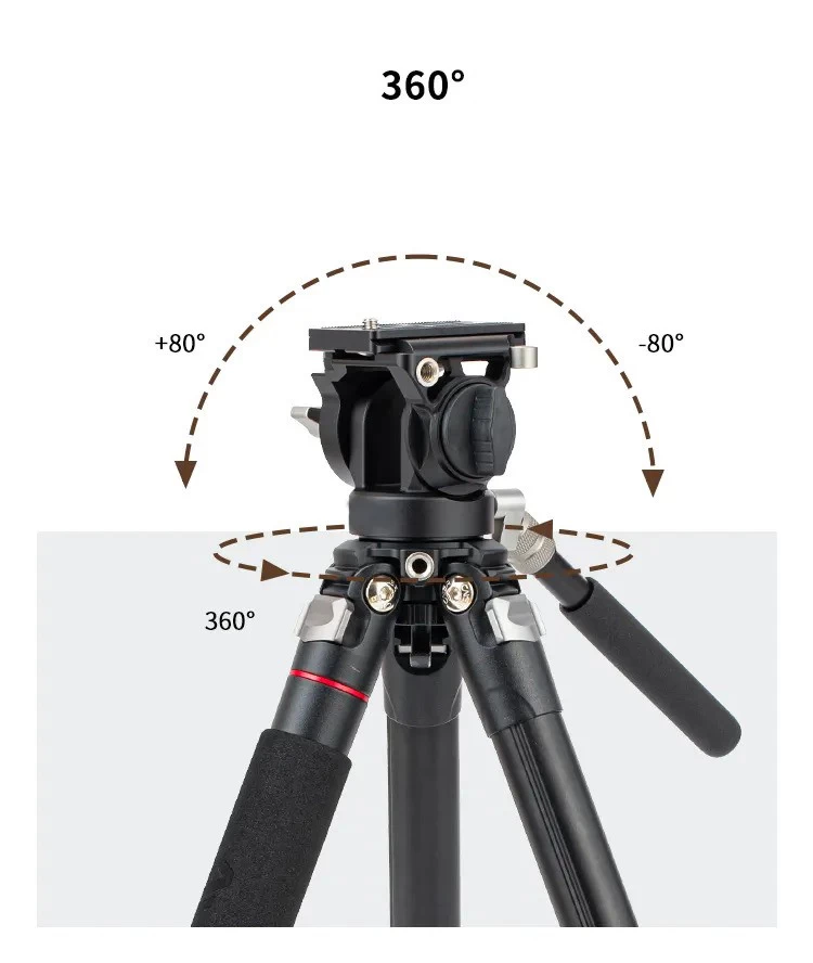 A fejen található kézi mozgató kar hosszát és dőlésszögét kényelmesen saját igényeinkhez lehet állítani. Körbeforgatva a fej 360°-ban akadálymentesen teljes panorámát képes befogni. Fotózáskor, videózáskor külön előny a fej oldalán található anya (1/4"-os) fotóállvány menet, amivel a különböző eszközeinket, videólámpáinkat, vakuinkat is az állványhoz rögzíthetjük. Főműszerünk rögzítésére a fejen található cseretalp szolgál. Az 1/4"-os állványmenetes cseretalp praktikusan, gyorsan le és felrakható és kiesésgátló mechanizmussal is el van látva.